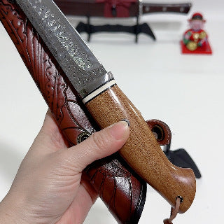 Crafted with durable steel for sharp and consistent cutting performance. Its ergonomic sand ironwood handle provides a secure and comfortable grip. Designed for camping, hiking, and everyday outdoor utility tasks. Comes with a protective sheath for safe carrying and storage.