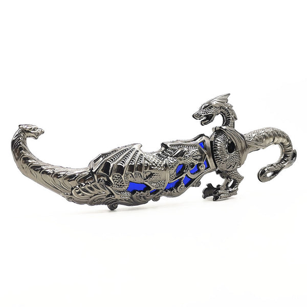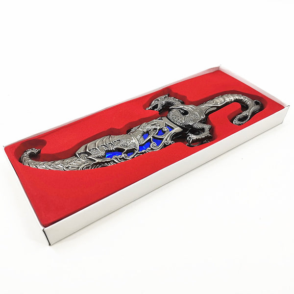 This classical-style metalwork sword is designed as a decorative display piece.