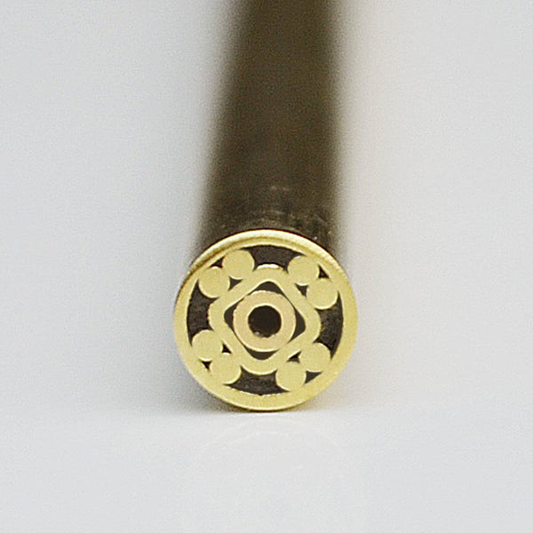 Our mosaic pins are hand-crafted by a veteran knife-maker in the USA.As a note: It is possible to drill a knife blanks pin holes larger (or create your own pin hole locations). You simply need to use drill bits intended for drilling metal which are capable of drilling through hardened high carbon steel. This method is recommended because you be able will get the exact fit you are looking for when using our mosaic pins.You will receive one piece of mosaic pin stock. Each piece comes in approximately 5.8" length.We use only the highest quality brass copper and steel.If your knife handle is 0.75"-0.9" thick this mosaic piece will make 6 pins when cut good for several knives.If your knife handle is 0.95"-1.15" thick this mosaic piece will make 5 pins when cut good for several knives.If your knife handle is 1.2"-1.4" thick this mosaic piece will make 4 pins when cut good for several knives.Our mosaic pins have been vacuum-pumped to remove air bubbles. The resin is pulled in with a high-end vacuum which pulls the glue down and removes any small bubbles. The pins are cured afterward and lastly polished and burrs removed.The center of the mosaic pin is filled with clear epoxy resin. The filling will appear dark when initially received however light will be able to shine through when you are done cutting this down to small pieces for your knife handle. The transparency will become evident with the smaller length pieces.You wont get any "rattlers" with our high quality mosaic pins (a "rattler" is where you have loose pieces inside the mosaic pin).A penny is shown for a size comparison. Penny not included.